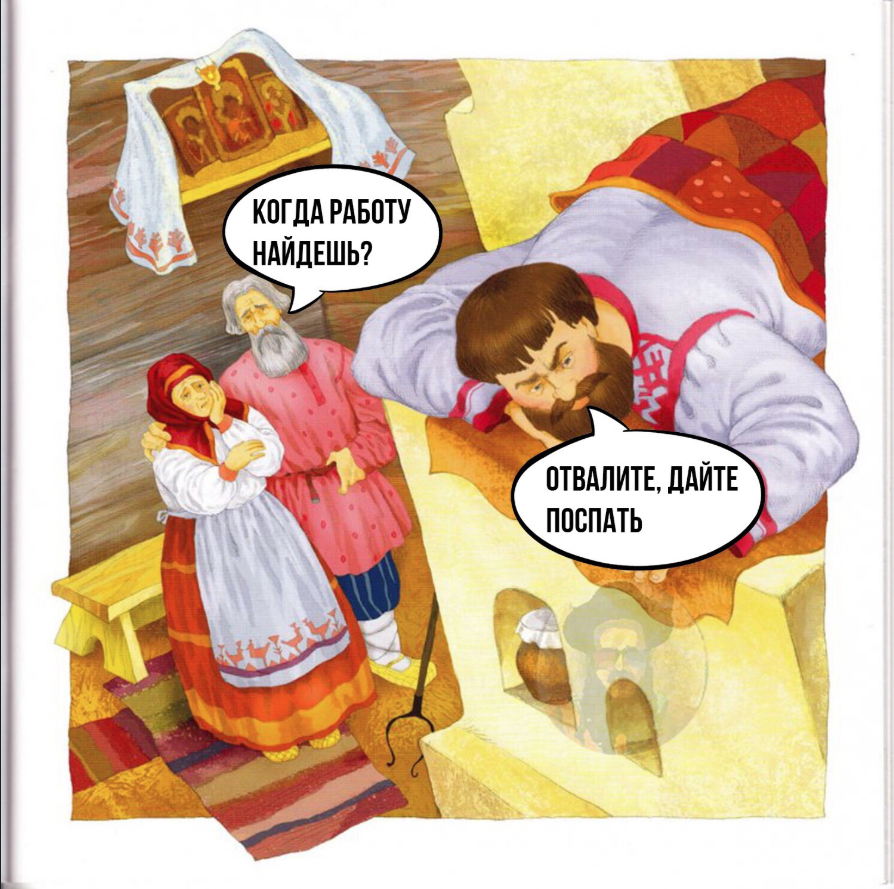 В былинах череда героических событий поджидала Илью после 30-летия, а до этого времени он страдал: «не владел» ни руками, ни ногами. Существует гипотеза, что это было редкое гормональное заболевание, спровоцировавшее в том числе и физические габариты богатыря. Однажды он, как обычно, сидел дома на печи, когда в ворота ему постучали странники и попросили впустить их. Илья встал, открыл двери — и только тут осознал, что исцелен. С этого момента началась жизнь, полная испытаний: встреча с самым древним русским богатырем — великаном Святогором, поездка к «камене неподвижному» за оружием и доспехами и подвиги на благо родной земли.