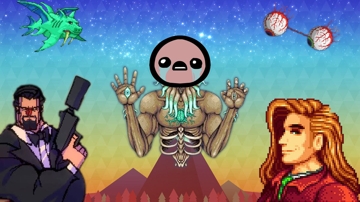 Приветствую тебя дорогой читатель!Если ты тоже относишься к лагерю любителей пиксельных игр и не брезгуешь поиграть в игры с "плохой графикой", как выражаются некоторые, то ты пришел точно по адресу. В этой статье я хочу рассказать вам об увлекательнейших играх, которые затянут вас и не отпустят очень-очень долго. Terraria Жанр: Приключенческая песочница, Инди, Экшен Разработчик: Re-logic Издатель:Re-logic Metacritic: 83/100 Вы попадайте в случайно сгенерированный мир и в арсенале у вас только топор да кирка."Что же делать дальше?",-спросите вы,-"Все, что вы захотите",-отвечу я.Да, в этой игре нет каких-либо ограничений или рамок, которые сковывали бы вас,вы вольны делать, что захотите.А заняться здесь есть чем.Во первых, вам надо построить дом, ибо нужно где-то прятаться от всех ужасных монстров.Во вторых, вам нужно оружие, чтобы убивать этих самых монстров.Из первого и второго пункта вытекает, что вам нужно добыть ресурсов, причем много.И пока ты будешь заниматься поисками новым