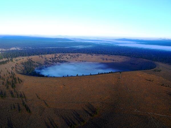 Hole-in-Ground является одним из самых знаменитых мааров на планете. Маар – это, своего рода, кратер или просто дыра, остающаяся в земле после того, как силой извержения вулкана разрушается надземная часть хребта. Маар Hole-in-Ground очень живописен. Хоул-ин-Граунд располагается в штате Орегон. Этот американский штат издавна известен своим «буйным характером» и несметным количеством вулканов. К примеру, в этом же штате, чуть севернее Hole-in-Ground, лежит Кратерное озеро. Но об этом позже. Hole-in-Ground представляет собой выжженную местность округлой форму. Размеры маара составляют примерно 1600 метров в поперечнике. Глубина маара Hole-in-Ground в само глубоком месте – около 150 метров. Сюда можно спуститься и постоять под ободом дыры. В таком случае стена кратера возвысится над вашей головой примерно на 35 — 65 метров, в зависимости от глубины спуска. Согласно исследованиям, маар Хоул-ин-Граунд появился примерно 13500 — 18000 лет назад. В те далекие времена у подножия го
