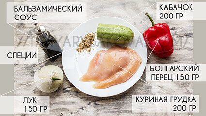 Сегодня я снова с вами делюсь легким и полезным рецептом куриной грудки. Приготовим её с овощами всего за 20 минут! Приготовление: Этап 1 Нарезаем мытые кабачок (можно почистить, если не молодой) и болгарский перец небольшими кубиками. Этап 2 Нарезаем куриную грудку средними кусочками. Этап 3 На разогретую антипригарную сковороду выкладываем курицу, добавляем немного воды и готовим 5 минут, помешивая. Этап 4 Нарезаем лук колечками и добавляем к курице, готовим еще несколько минут, помешивая. Этап 5 Выкладываем перец и кабачок к курице, добавляем специи и тушим минут 5. Затем добавляем бальзамический соус по вкусу и готовим еще 5-7 минут под крышкой. Калорийность: Больше вкусных и полезных рецептов ищите на моем сайте :)