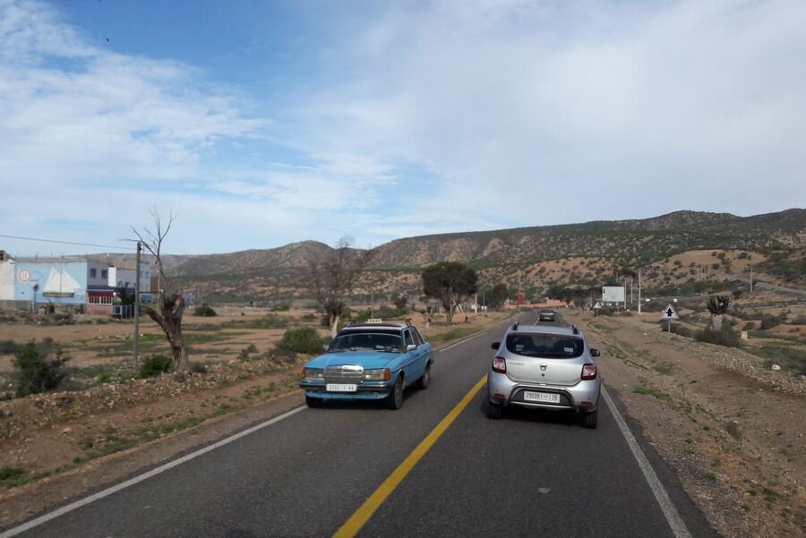 На фото ниже - модельный ряд такси крупным планом. Французский и итальянский автопром девяностых, нулевых, десятых годов... От свежего морского воздуха Фиаты делаются крепкими и здоровыми, повышается потен (исправлено) компрессия, перестают рваться ремни ГРМ. Автослесари рекомендуют Марокко!
