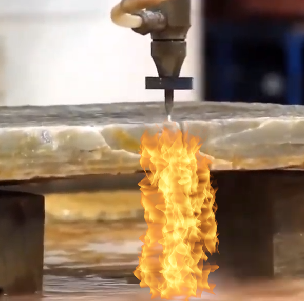 Данный способ называется гидро-абразивный, как следует из названия вода, не просто вода. Мелкие крупицы с жидкостью подаются под огромным давлением, по сути своей станок очень напоминает мойку высокого давления для авто, только во много раз сильнее и вместо того чтобы отмыть грязь, может просто разрезать машину на много маленьких частей.