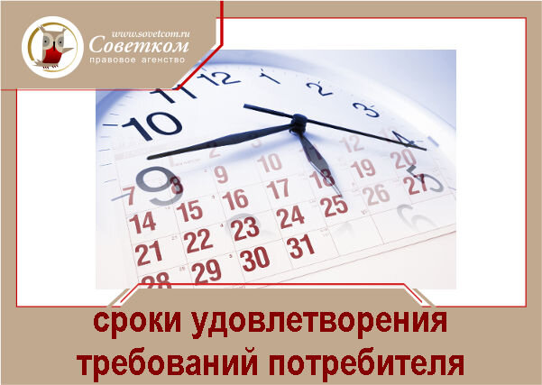 Доброго времени суток, с вами на связи Ахунов Алексей. Сегодня мы дадим ответ на вопрос: сроки рассмотрения заявления потребителя Предлагаю рассмотреть этот вопрос в разрезе следующих требований Обычно у компаний есть образцы ответов на стандартные претензии, что сокращает время ответа. В данной статье мы рассмотрим максимальные сроки Рассмотрим сроки удовлетворения вышеуказанных требований Оглавление Возврат товара ненадлежащего качества Продавец на претензию с требованием о возврате денежных средств за некачественный товар отведено 10 дней, включая время диагностики, если она требуется. (ст. 22 Закона «О защите прав потребителей»). На возврат денежных средств за товар надлежащего качества продавцу отведено 3 дня (п.2 ст. 25 Закона «О защите прав потребителей») Обмен товара ненадлежащего качества Решение об обмене товара продавец может принимать согласно закона максимум 20 дней, включая время диагностики (п.1 ст.21 Закона «О защите прав потребителей») В случае, когда у Вас на руках