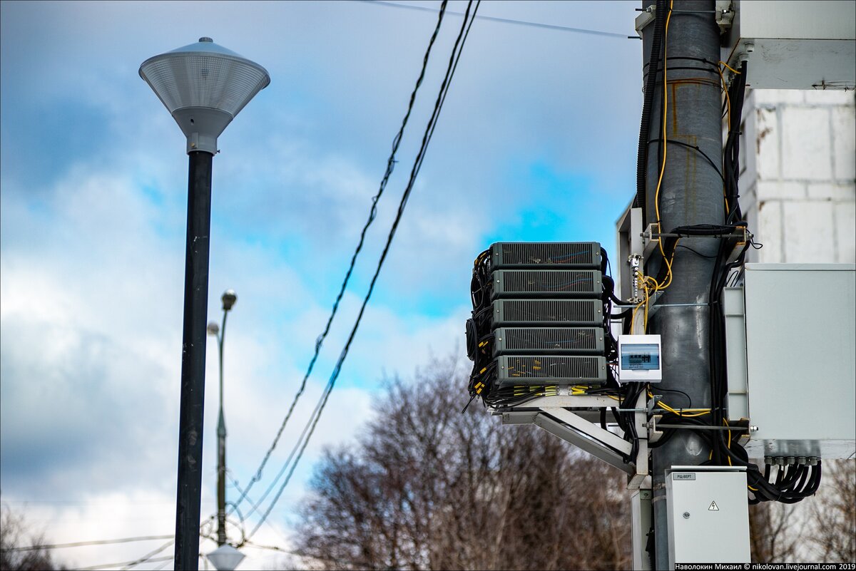 В Москве установлено более 50 тысяч базовых станций сотовой связи. Примерно 75% из них находится на административных зданиях. Остальные 25% на мачтах. Это более 12 500 мачт. Обычно мачтовая базовая станция состоит из 4 основных элементов. Самой мачты на которой снизу вверх закреплены: основной блок, блок приемопередатчиков, система антенн. Связисты называют станции сотами:)) Обращаете на них внимание?
