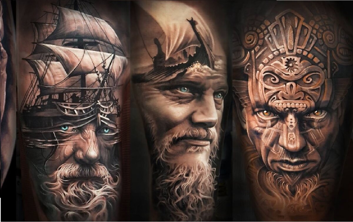 Скандинавская мифология очень богата с точки зрения фольклора. Разнообразные персонажи, подвиги и конфликты, разнообразные миры, боги, великаны и многое другое. Благодатная тема для нанесения татуировок. В этой статье я покажу наиболее красивые с художественной точки зрения татуировки со скандинавскими мотивами. Ну и конечно подборку следует начать с верховного бога и отца всех других богов, великого Одина. На данном тату присутствуют два бессменных спутника Одина вороны Хугин и Мунин, которые согласно мифологии летали по всему миру и сообщали богу о происходящем, своего рода шпионы. Один часто являлся людям в виде путника, на тату также изображены вороны. Внизу тату изображен дракар, корабль на котором викинги совершали набеги на чужие земли. На данном тату изображен старший сын Одина, бог громовержец Тор и змей Ермунганд, сын Локи. На данной композиции изображен их бой во время Рагнарека, конца света в скандинавской мифологии. Данная татуировка изображает Рагнарек, конец света. Вн