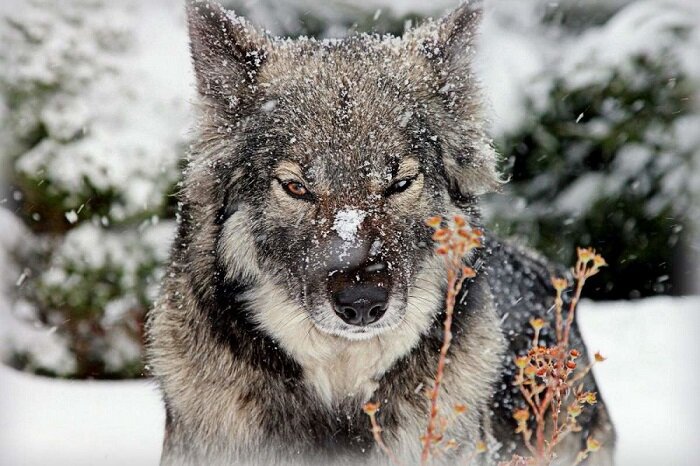 Волкособ – самая молодая порода, выведенная в России 15 лет назад. В животном течет 80% собачьей крови и только 20% волчьей. Смелый статный красавец с лучшими качествами волка и собаки – вот что бывает, когда вязка происходит «по любви». Но обо всем по порядку. История породы Отечественные селекционеры ни раз пытались скрестить волка и собаку. Но ученых всегда настегало фиаско. У щенят отмечались серьезные патологии. А потом за дело взялся Касимов В.М. и будущая порода была спасена от провала. В вязке принимали участие прирученная волчица Найда и кобель немецкой овчарки. На протяжении четырех лет девочке не могли подобрать пару. Но увидев своего «жениха» впервые, Найда сама отсеяла остальных претендентов. 2003 год стал переломным для волкособов, у Найды появился первый помет. Щенки родились с характером отца и внешностью матери. Здоровое потомство стало гордостью российского собаководства. Когда малышам исполнилось по 3 месяца, кинологи занялись их социализацией. Не только россий