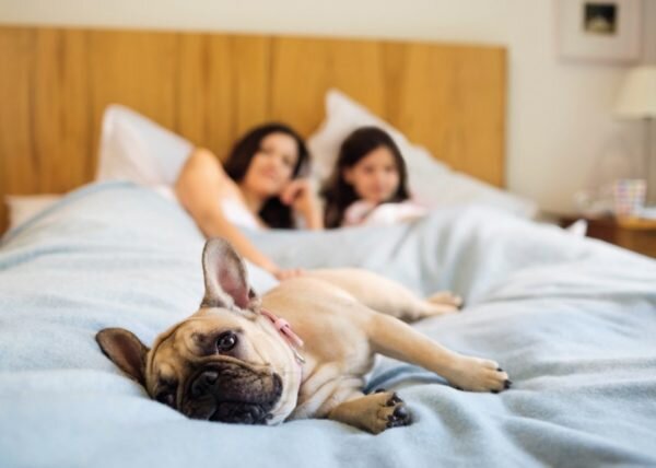 Если питомец спит в кровати хозяина, то не стоит это оценивать, как наглость, ведь на самом деле, разобравшись в проблеме, все не так уж и плохо :)