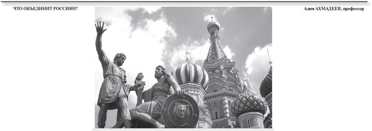 Национальная идея для нас — это вопрос о будущем нашей страны, о ее успешности и динамическом развитии. Если предложим обществу перечень исторических маркеров, способных выполнять функцию духовной скрепы. Если сумеем найти для них ценностно-смысловые и гражданские ориентиры. Если обозначим россиянам и всему миру образ желаемого будущего.