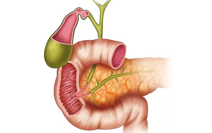 Двенадцатиперстная кишка - это начальный отдел кишечника, которой начинается сразу после привратника желудка. Двенадцатиперстная кишка состоит из 4 частей: Двенадцатиперстная кишка в организме человека выполняет очень важные функции, к основным из которых относятся: Регуляция кислотности Пищевая кашица, которая выходит из желудка не готова для кишечного пищеварения, так как обладает повышенной кислотностью. В двенадцатиперстной кишке происходит регуляция кислотности пищевой кашицы. В зависимости от кислотности и химического состава кашицы, которая поступила в двенадцатиперстную кишки, инициируется выработка панкреатических ферментов и желчи. Пищеварительная функция Пищеварительные ферменты, которые поступают в двенадцатиперстную кишку не только регулируют кислотность, но и участвуют в процессе пищеварения. Под воздействием пищеварительных ферментов в двенадцатиперстной кишке происходит заключительная стадия расщепления белков, жиров и углеводов. Моторно-эвакуаторная функция Двена
