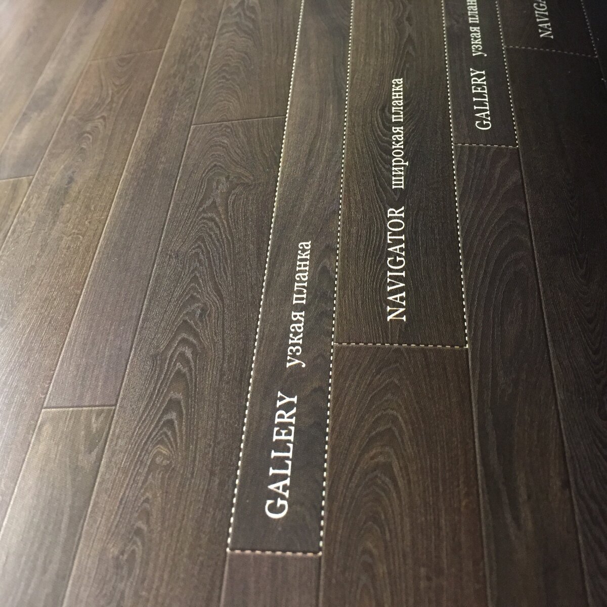 Идея такая: делаем пол из ламината максимально похожим на дорогую массивную доску, чтобы никто не понял, что это ламинат. Но! - цена должна быть как у ламината, а не как у массивки -чтобы укладывать было легко самостоятельно или без переплаты мастеру за сложность монтажа -чтобы влаги не боялся -и еще, чтобы ни у кого такого не было. Идея эта не нова, но реально реализована под эти запросы в массовом стандартном продукте, произведенном в России, наверно, впервые. Для этого создания этого пола были использованы 2 вида ламината, толщиной 12 мм, с фаской с 4-х сторон: Ламинат Tarkett NAVIGATOR Гибралтар (широкая планка) Ламинат Tarkett GALLERY Пикассо (узкая планка) Укладывали рядками: ряд широкой планки, ряд узкой. Если решите брать такой, при заказе в магазине, обязательно попросите менеджера просчитать количество одного и второго, чтобы не получилось, что метров-то нормально взяли, а положить по задумке не получается, так как одного ламината много, а другого не хватило. Т