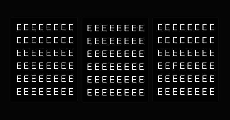 Сегодня мы представляем вам очередную проверку внимательности и наблюдательности. Но заодно и проверим вашу усидчивость. Ведь без нее невозможно справляться с задачами, которые требуют концентрации внимания. А эта как раз из этого вида. Тогда предлагаем вам не терять времени даром, а потратить его с пользой. Наша очередная задачка содержит спрятанную букву. На картинке вы можете увидеть большое количество букв «Е». Но здесь мы спрятали одну букву «F». Найти ее может быть непросто, но мы в вас верим! Можете ли вы сказать, где она скрывается? (Вниз сразу не листайте запись , там ответ ) Подобные классические головоломки предусматривают тренировку мозга. Если вы пытаетесь найти скрытый от глаз объект, то происходит улучшение мозговых связей. Импульсы передаются быстро и правильно, не нарушается взаимодействие между разными отделами мозга. Вы тренируете не только память и интеллект, но и логику одновременно. Сплошные преимущества, не так ли? На самом деле найти символ не так сложно, как
