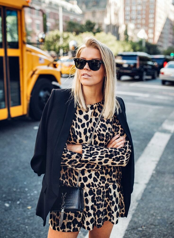 Абсолютный хит этого сезона — леопардовый принт в одежде. С неизменной регулярностью «животные» мотивы возвращаются на модные подиумы. Не исключение и в этот раз. Юбки, брюки, блузки, куртки, пальто, обувь, дамские сумки в пятнистом принте этой весной дико популярны. Однако, чтобы не переборщить с «леопардом», необходимо знать, как правильно сочетать его в одежде. Первое, что нужно помнить, анималистические принты по своей природе слишком активные и пестрые. Не стоит одевать все и сразу, выберете какую-нибудь одну вещь в таком принте. Иначе Вы рискуете выглядеть безвкусно и вульгарно. Второе, одежду с таким принтом лучше всего выбирать для той части фигуры, достоинства которой необходимо подчеркнуть. Третье, чтобы не перегрузить образ, сочетайте леопардовый принт с однотонными вещами. Теперь разберемся детально. Если Вы не рискуете примерять одежду с леопардовыми мотивами, приобретите обувь, дамскую сумку, платок, ремень или, например, солнцезащитные очки. Эти вещи придадут вашему