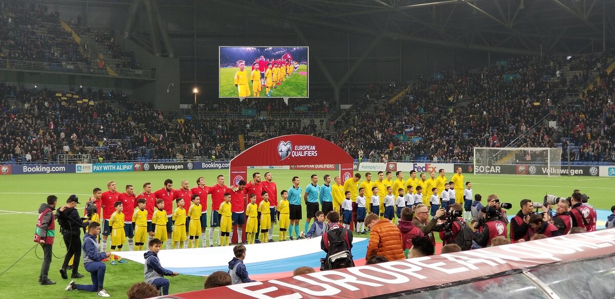 Зрители прильнули к мониторам, эксперты начали работать на камеру, а комментаторы включили микрофоны с гарнитурой. Все было готово до старта матча сборной Казахстана против России. Стадион в Нур-Султане был заряжен энергией, производимой эмоциями болельщиков. Прозвучали гимны, и с центра поля разыграли мяч подопечные Станислава Черчесова. Тренер российской команды очень детально подошел к выбору состава. В отличие от поединка с Бельгией, здесь приходилось играть на искусственном газоне, из-за чего некоторых футболистов нужно было поберечь. Вышедший в старте Ионов по ходу первого тайма уже показал, что Станислав Саламович принял правильное решение. С первых минут россияне завладели мячом, но не инициативой. Наша сборная постепенно переводила игру на половину поля соперников, но с проникновением в штрафную площадь были проблемы. Казахстанцы выстроили неплохую оборонительную линию. Правда, контратаки, на которые они рассчитывали, ни к чему серьезному не приводили. Постепенно ноги игроков