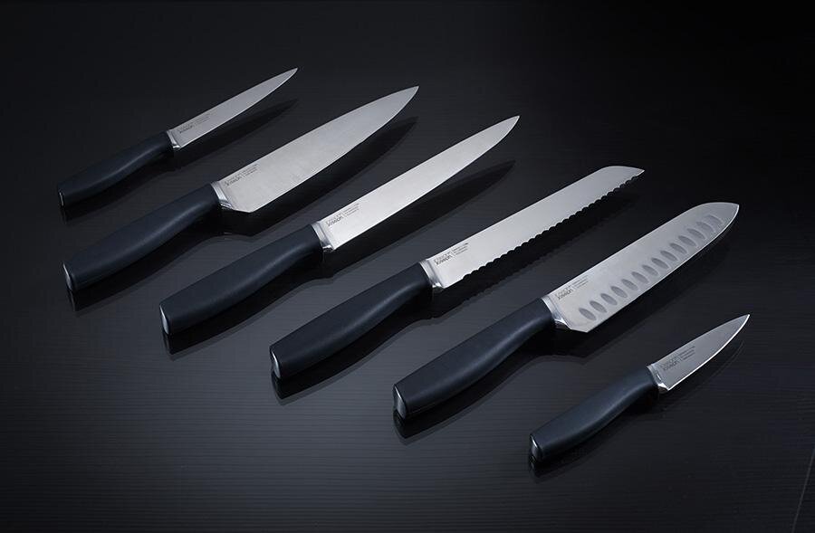 Каждый человек, которому однажды приходилось резать тупым ножом, понимал на сколько это малоприятное занятие. Сегодня я расскажу и покажу, как можно быстро и легко заточить ножи в своём доме. Для начала возьмём вот такой камень. Он продаётся в хозяйственных магазинах и стоит гораздо дешевле заточки ножей у мастера. Камень с одной стороны мелкозернистый, а с другой - крупнозернистый. После этого кладём камень перед собой мелкозернистой стороной на полотенце или разделочную доску, а крупнозернистой стороной вверх. Далее смачиваем его водой, что бы не засорять поры металлической пылью и обеспечить лучшее скольжение ножа по камню. Так же можно провести по камню губкой с каплей жидкости для мытья посуды. Теперь нам необходимо определиться с углом заточки. Чем меньше угол, тем острее получается лезвие, а чем он больше — тем дольше лезвие сохраняет остроту. Оптимальный угол для домашнего использования ножа 45 градусов. То есть, для заточки лезвия в 45 градусов нужно каждую его сторону