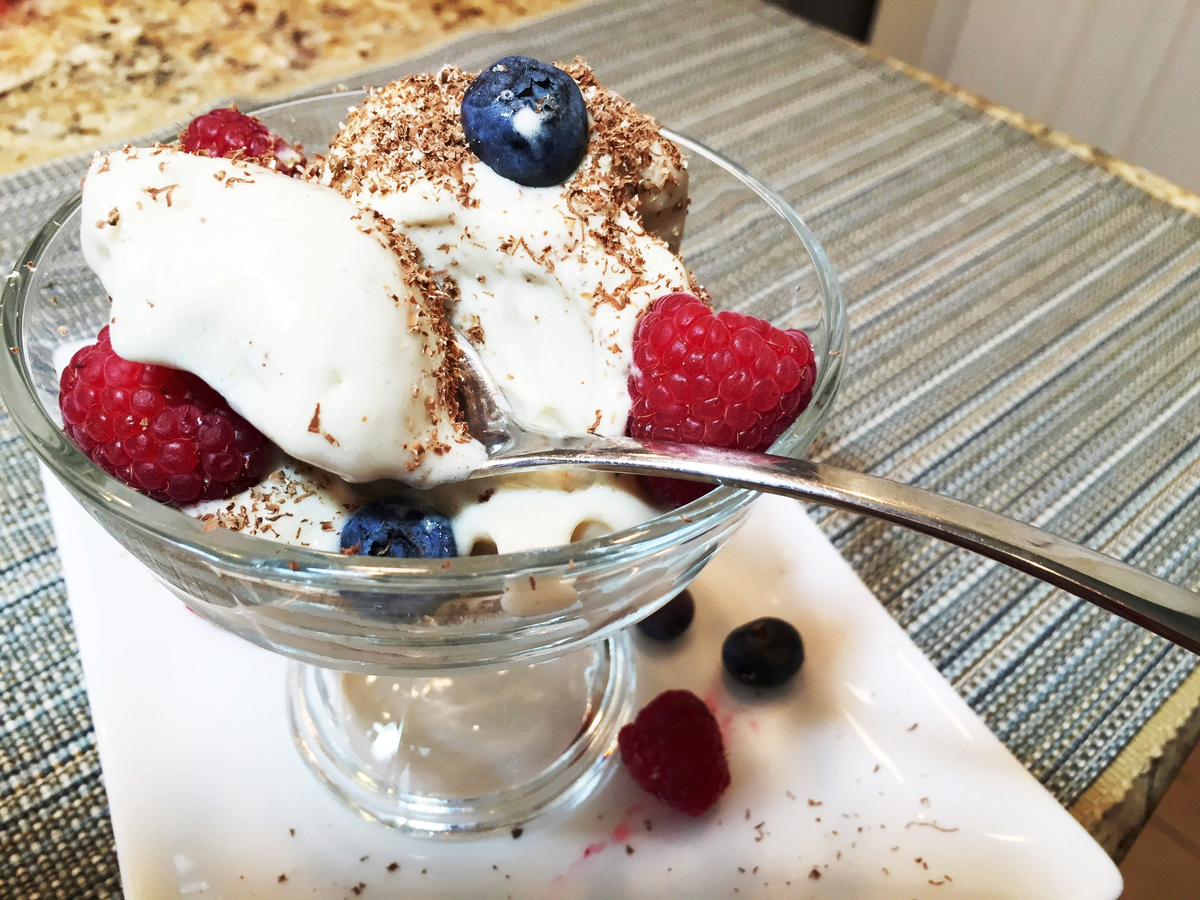 11. После нескольких взбиваний оставьте мороженое в морозилке часов на 8-12. В идеале на ночь. Утром вас будет ждать потрясающее лакомство. Чтобы достать его из миски используйте специальные круглые ложки нагретые в кипятке. Можно делать это обычной ложкой. Просто подержите ложку в чашке с горячей водой буквально пару минут.