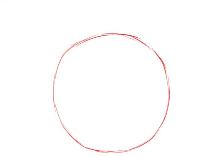 Прежде всего мы нарисуем большой и ровный круг, как в примере ниже.