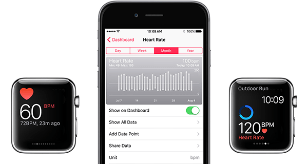 Одновременно с другими производителями, в часах iWatch используется методика фиксации ритмов сердца с применением инфракрасных лучей. Данный метод применяется при непрерывном отслеживании сердечного ритма пользователя, в отличие от первой методики, которая наиболее подходит для фиксации данных при занятии спортом. Кроме того, это позволяет еще и измерять давление на Apple Watch человека и контролировать температуру тела.
