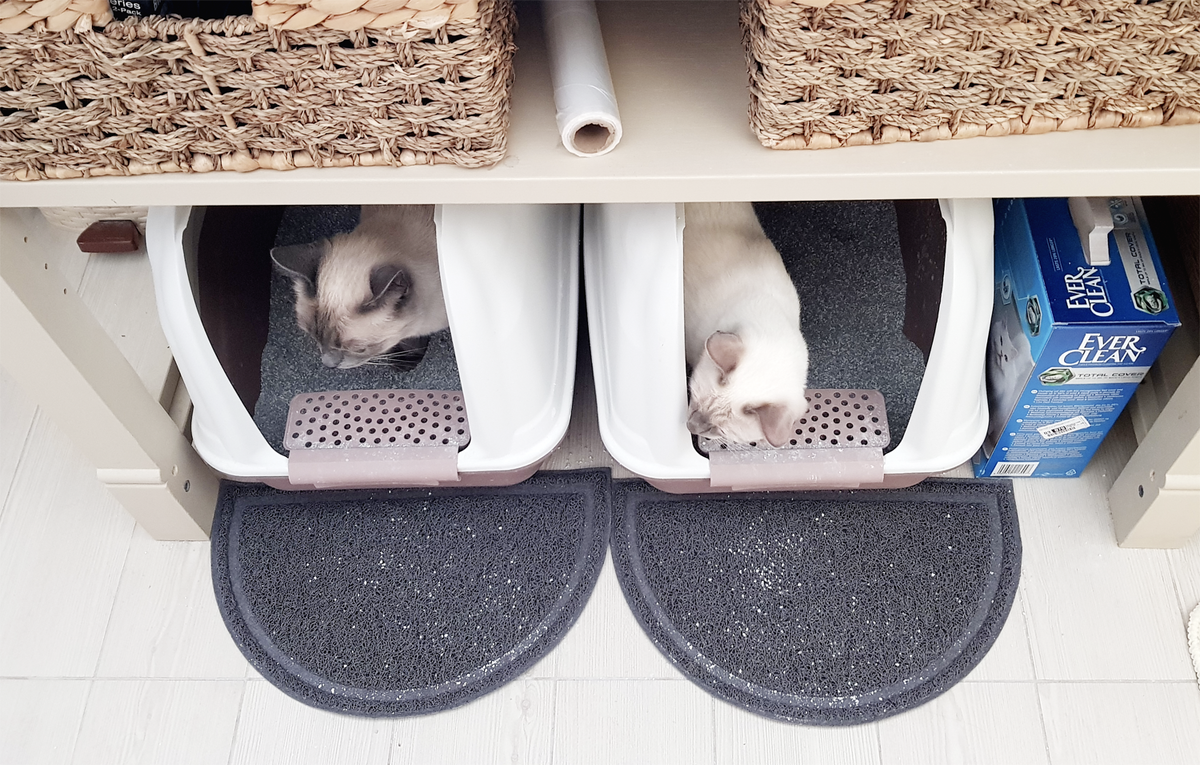 Если не знать, что у нас всего два кота, то, оценивая производимые ими звуковые эффекты во время игр, можно предположить, что с нами проживает целое стадо, причем не представителей семейства кошачьих, а каких-то копытных :))) Соответственно, у этого кошачьего стада есть и стадные рефлексы: они всё должны делать одновременно. Но порой доходит до каких-то нелепостей эти их повторюшничества. К примеру, посещение "важного места". Если пошел один, то обязательно должен пойти другой))) При этом, у второго не является обязательным физиологическое желание туда идти. Но нет, садятся оба, сидят. Митя, как правило, еще высовывается посмотреть, там Степа еще или проскочил незаметно: Старший кот Степа у нас аккуратист, у него во всем должен быть порядок. И он считает, что все вокруг всё делают не так качественно, как надо, поэтому, он всегда, закопав за собой, идет закапывать за младшим Митей. Наблюдала сегодня забавное. Как всегда, не в силах побороть предположительный стадный рефлекс, Митя у