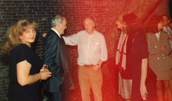 Май примерно 1990-го года. День рождения Иосифа Бродского в его доме в Вилладже... Там квартирка выходила во внутренний дворик, и гости, почти поголовно курившие, не говоря уж о хозяине, выходили с бокалами вина в весенний дворик. На фотографии — я (в виде блондинки), Боб Сильверс, главный редактор журнала "The New York Review of Books", Иосиф Бродский, Роз-Мари Морс (пиарщица) и почти слившаяся с ней профилем Джейми Гамбрелл, моя переводчица и просто прекрасная девушка. Кто там справа — не разберу, да снято на плохой фотоаппарат, вон как пленка засветилась. Мы были на этом дне рождения с моими детьми. Иосиф, я бы сказала, их ЗАМЕЧАЛ, не проходил мимо каких-то там подростков. Он сказал моему 14-летнему сыну Алексею: "А я придумал рифму к слову сковородка. Знаешь, какую?" — "Какую?" — "Скоро водка". Он ее придумал раньше, но, видимо, она ему самому нравилась. Вот, почти тридцать лет прошло. Татьяна Н. ТОЛСТАЯ