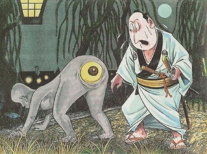 Все мы знаем таких существ как леший, домовой, кикимора из русской мифологии. В греческой есть гидры, гарпии и сатиры. Даже о скандинавской мы многое слышали (спасибо масмедии) : змей опоясывающий землю - Ёрмунганд, гигантский волк - Фенрир, бесподобные воительницы на крылатых конях - валькирии. А вот о японских существах и поверьях, надо признаться, до сегодняшнего дня я ничего и не знал толком. Разве что слышал о девятихвостой лисице - Кицуне. На самом деле японская мифология удивительно разнообразна, и не похожа на привычные нам истории. Это связано с тем, что Япония - островное государство, и культура там развивалась обособленно от других стран. И вообще них все по-своему. Ближе к "фантастическим тварям". Кто смотрел "Дом странных детей", тот меня поймет. Помните девочку, у которой на затылке был второй рот. На самом деле - это не придумка автора, а творение японского фольклора. Ее зовут Футакучи-онна. Обладательница второго рта одержима и вечно голодна. По приданиям, одержимой жен