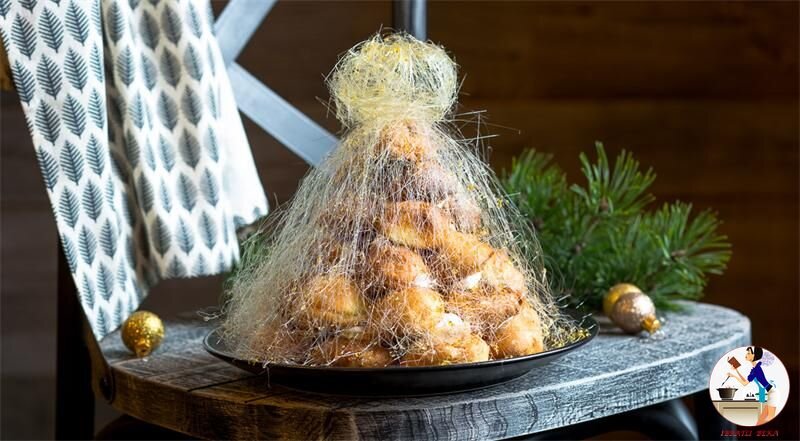 Krokembush - fransuzcha tort hisoblanib, yengil va hushta'm. Tayyorlanishi biroz vaqtingizni olsada, natijasi har qanday dasturxon davrasida barcha uchun ma'qul bo'ladi. Kerakli masalliqlar: 200 gramm saryog' 1/2 choy qoshiq tuz 440 gramm un 8 dona tuxum 500 gramm maskarpone 200 ml qaymoq 200 gramm shakar kukuni (vanilin kukuni bilan) 400 gramm shakar 10 ml laym sharbati Tayyorlash usuli: 1. 500 ml suv quyilgan kastryulkaga tuz va saryog'ni soling. Olovga qo'ying, qaynash darajasigacha olib boring. 2. Olovdan oling, unni solib, asta-sekinlik bilan aralashtiring. 3. Xamir yengil idish devorida qoladigan, bir xil konsistensiyali massa kabi tayyorlanishi lozim. 4. Bir donadan tuxumni qo'shib aralashtiring. Har bir tuxumdan so'ng yaxshilab aralashtiring. 5. Tayyor xamir yumshoq va yopishqoq, shuning bilan birga o'z hajmini ushlab tura oladigan bo'ladi. 6. Pergament qog'ozi yozilgan pishirish qolipiga, maxsus konditer qopchasi yoki ikki choy qoshiq yordamida, yong'oq hajmida solib chiqing.