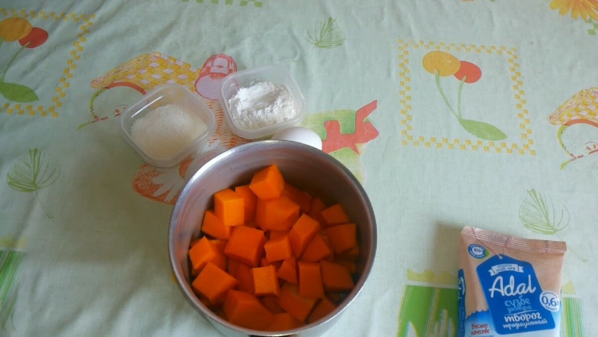 Тыкву порезать на кусочки и отварить (варится 15-20 минут)