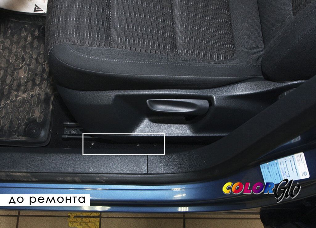 РЕМОНТ КОВРОВОГО ПОКРЫТИЯ И СИДЕНЬЯ ПАССАЖИРА – РЕМОНТ ПРОЖОГОВ В САЛОНЕ VOLKSWAGEN TIGUAN – АВТОАТЕЛЬЕ COLOR GLO RUSSIA Прожог в салоне - достаточно частое повреждение, которое во многих случаях наносит сам же автовладелец. Даже, если Вы сами не курите, то это вполне может сделать пассажир или попутчик. И произойти это может как в частном автомобиле, так и, например, в автомобиле такси, если Вы, например, таксист. Не всегда маленькую дырочку Вы заметите сразу, но настроение такой дефект Вам наверняка испортит. Прожоги в салоне Volkswagen Tiguan · Ковровое покрытие с левой стороны от сиденья водителя · Нижняя часть сиденья («сидушка») пассажирского сиденья Особенности ремонта прожогов реставрационной линейкой Color Glo International Технологии реставрации Color Glo International позволяют устранить последствия любого прожога – реставрационные материалы и краски не скрывают, не маскируют, не замазывают место прожога, а восстанавливают структуру основного материала. Под каждый мате