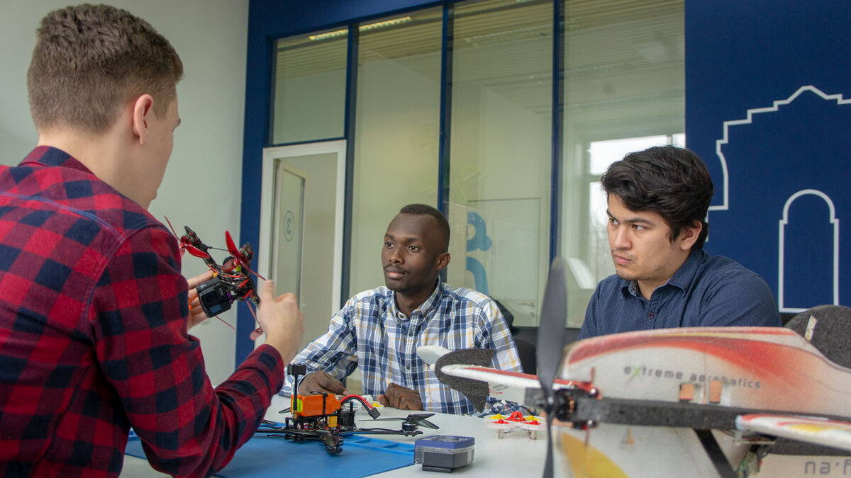 Весной 2019 года в школе дронов Московского авиационного института стартовала экспериментальная программа обучения для иностранных студентов. Пионером данного сотрудничества стал Исаак Вандермах, студент факультета довузовской подготовки МАИ из Уганды. Исаак не только сам начал посещать занятия в школе дронов, но и организовал целую группу иностранных студентов, которые заинтересовались работой с беспилотниками. «Появление первых иностранных студентов в школе дронов связано с многопрофильностью и интернациональностью нашего университета. Мы вели переговоры о курсах со многими иностранными студентами МАИ, но студенты из Уганды оказались самыми инициативными. Создание такой группы — это первый подобный опыт для нас. Наша команда составила для них уникальную программу. Главная задача — познакомить ребят с миром беспилотных летательных аппаратов и дать им первоначальные навыки управления ими. Мы также решили посмотреть, как будет распределяться информация на занятиях. Язык обучения — англи