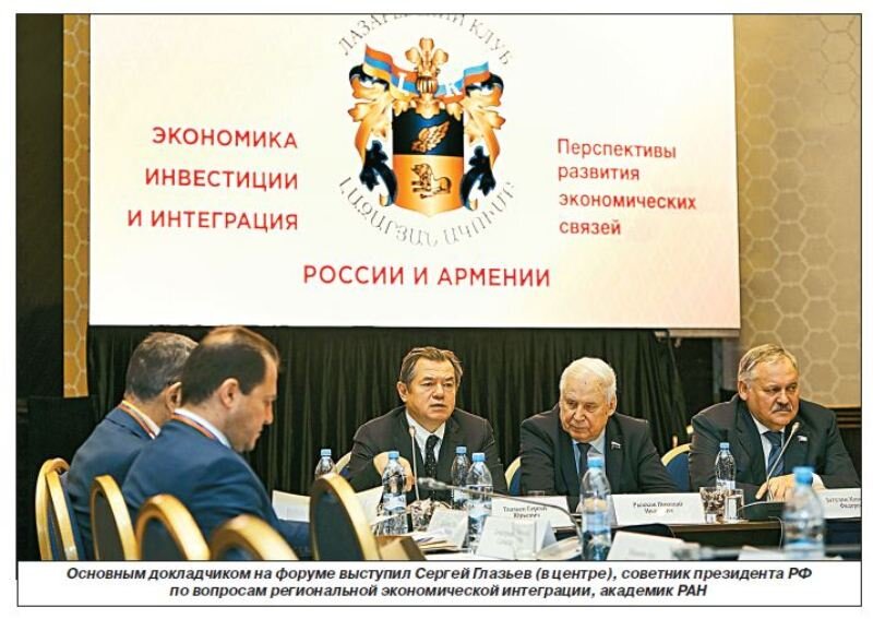 Мы получили согласие ведущих экономистов страны, представителей крупных российских корпораций, присутствующих в Армении, относительно участия в заседании клуба, чтобы обменяться информацией, опытом, представить свое видение развития экономического взаимодействия России и Армении. Основным докладчиком выступил Сергей Глазьев, советник президента РФ по вопросам региональной экономической интеграции, академик РАН. В обсуждении принимали участие известные экономисты, в том числе из Института стран СНГ, специалисты в области экономических отношений, представители крупнейших российских государственных корпораций – «Росатома» и ПАО «Газпром». К сожалению, не смогли участвовать в заседании представители ОАО «РЖД». Думается, проблемы, возникшие с работой филиала РЖД в Армении сегодня, могли побудить представителей ОАО «РЖД» к участию.