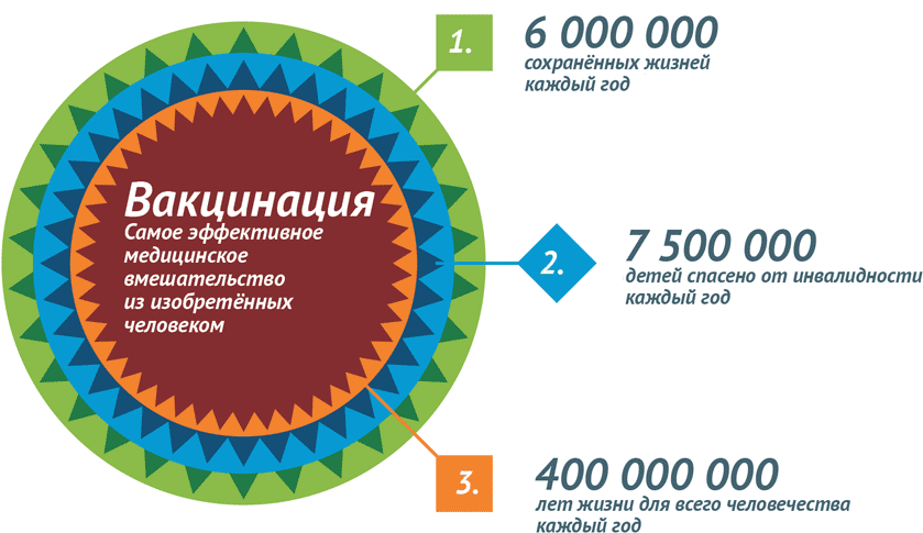 Гораздо выше вероятность серьезно пострадать от болезни, предупреждаемой вакцинацией, чем от самой вакцины. Например, при заболевании полиомиелитом может развиться паралич, корь может вызвать энцефалит и слепоту, а некоторые заболевания, предупреждаемые вакцинацией, могут даже привести к смерти. И хотя даже один случай тяжелого ущерба здоровью или смерти в результате вакцинации – это уже много, преимущества вакцинации значительно перевешивают риски, и без вакцинации случаев болезни и смерти было бы намного больше.