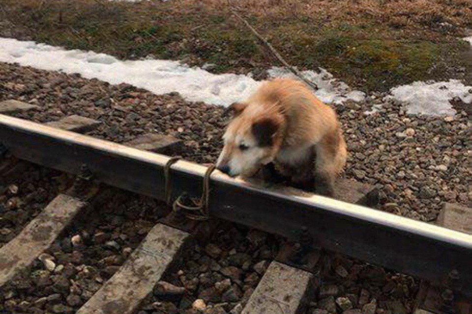 Машинист тепловоза спас собачку, которую привязали к рельсам