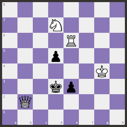 Шахматная задача. Король черных планирует уйти через пункт с4. Однако ход белых, мат в 2 хода. Подпишитесь на канал и будет много новых, интересных задач. Решение публикую далее 1. Ладья е4. 1. ... черные бьют на е4 Королем. 2. Конь с5 мат. Пишите в комментариях другие варианты. Подпишитесь и будет много новых, интересных, познавательных задач.задача 94 тут>>>задача 95 тут>>>задача 96 тут>>>задача 97 тут>>>задача 98 тут>>> задача 99 тут>>> задача 100 тут>>>