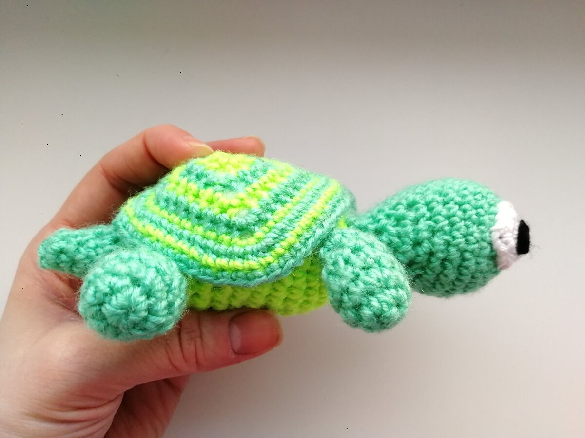 Всем привет! Решила поделиться описанием черепашки, перевод которой я, Анна Утешева, недавно завершила и провела по нему совместник. Для вязания нам понадобится: 1) Пряжа. Желательно если это будет полухлопок типа YarnArt Jeans или Alize Cotton Baby, также можно взять акрил двух цветов: светло- и темно-зеленого. Но, если вы хотите поэкспериментировать, можно взять и любые другие. Кто сказал, что черепашка должна быть именно зеленая?! Она же игрушечная, поэтому может быть и серо-бур-малиновой).