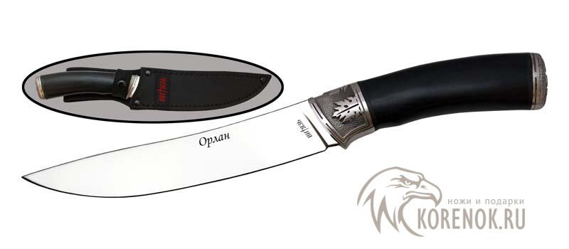 Нож Витязь Viking Nordway B173-34 "Орлан" выпущен по заказу фирмы ООО "ВН Трейд" г. Москва. Клинок прямой, классической формы с спуском от обуха. Немного задран вверх. Дизайн клинка - Андрей Бирюков. Размер ножа: Общая длина: 288 мм. Длина клинка: 157 мм Ширина клинка: 30 мм Толщина клинка: 3.2 мм. Твердость клинка по шкале HRC: 55-56 ед. Клинок сделан из нержавеющей стали 65х13. Клинок полированный. Нож сертифицирован. Признан ножом туристическим и разрешен к свободной продаже и ношению на территории России. Скажем так - проблем не будет с правоохранительными органами, так как упор на ноже отсутствует. Соответственно данный нож нельзя отнести к холодному оружию. Рукоять изготовлена из стабилизированной древесины. Гарда и навершение из металла. Ножны пошиты из нейлона. Добротно и качествено. Нож в ножнах удерживается плотно и фиксируется хлястиком с кнопкой. Обзор ножа сделан по материалам сайта www.korenok.ru Огромный ассортимент ножей из различных сталей. Один из крупнейших инт