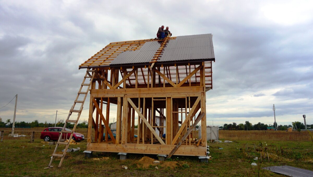 Какой бы дом вы не строили, кирпичный или каркасный, крыша это один из самых важных элементов в доме. Крыша является защитой от ветровых и снеговых нагрузок. Особое внимание нужно уделить конструкции крыши. От того как смонтирована крыша зависит комфорт проживания. Мы рассмотрим устройство крыши без холодного чердака. Важные элементы обустройства крыши. Разберем по слоям. 1,2,3 и.т.д 1. Коньковый прогон. Это несущая балка на вершине конструкции. 2. Стропила. Это ребра жесткости размещающиеся под углом. На них ложится вся нагрузка от внешних воздействий. 3. Ригель. Это поперечина которая распределяет нагрузку и снимает напряжение со стропил. 4. Ветрозащита или супердиффузионная мембрана. Защищает утеплитель от конденсата скопившегося на кровле. Выпускает излишки пара из утеплителя. (Если на кровлю смонтировать паронепропускаемую изоляцию, излишки пара скопятся в утеплителе и протекут во внутрь дома.) Не путайте с пароизоляцией которая монтируется внутри помещения. 5. Контр-обрешетка.