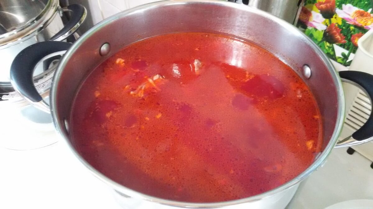 Так его делают папы! :) Возможно, не все, но конкретно в этом случае - да. :) Зная о моем хобби, друзья иногда присылают мне свои рецепты с фотками. Я уже рассказывала о Насте и ее рецепте черемши. В процесс втянулся и ее папа. Помните его рецепт котлеток? Теперь он рассказал мне о своем рецепте приготовления борща! Если вам понравится рецепт, ставьте палец вверх и пишите комментарии, нам интересно ваше мнение! И подписывайтесь на канал, впереди еще много рецептов на все случаи жизни! :) Приготовьте следующее: - Кастрюля на 5 литров - Телятина на кости - 1,5 кг. - 6 средних картофелин - 2 средних луковицы - 2 средних морковки - Половинка небольшого кочана капусты - Помидорка или (лучше!) домашний томат - полбанки - Зелень (петрушка, укроп) - Лавровый лист - Соль, перец - Растительное масло Готовим: 1) Варим из нежирной телятины бульон. Если используем говядину - варим на двойном бульоне: как только все закипело - слить и залить мясо новой водой. Во время варки бульон с мясом солим, до