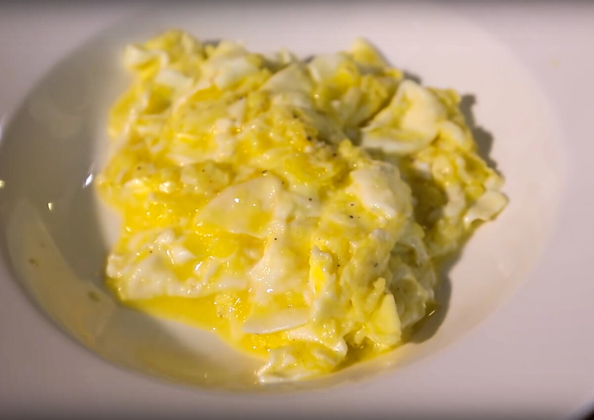Завтрак это самая важная трапеза дня. А готовить нежную болтунью должен уметь каждый. Давайте я вам покажу как это делают шеф-повара. Ингредиенты: Яйца - 3 шт Сливочное масло - 25 г Приготовление: Сковорода не должна быть разогретой! Примерно 25 граммов сливочного масла отправляем на сковороду. Как только расплавится масло, разбиваем туда 3 яйца и, не дожидаясь их зажаривания, убираем газ до минимума. Обильно солим и добавляем немного перца. Готовим тарелку сразу, ставим рядом со сковородой. Лопаткой начинаем мешать яйца, наши 25 граммов масла не дают яичнице приставать к сковороде. Как только яйца "схватились", тут же перекладываем яичницу в тарелку. Если же яйца пережарить, то белок и желток свернется и не будет вызывать такого аппетита. А у нас болтунья получается сочной, вкусной и очень ароматной, как в ресторане. Приятного аппетита!