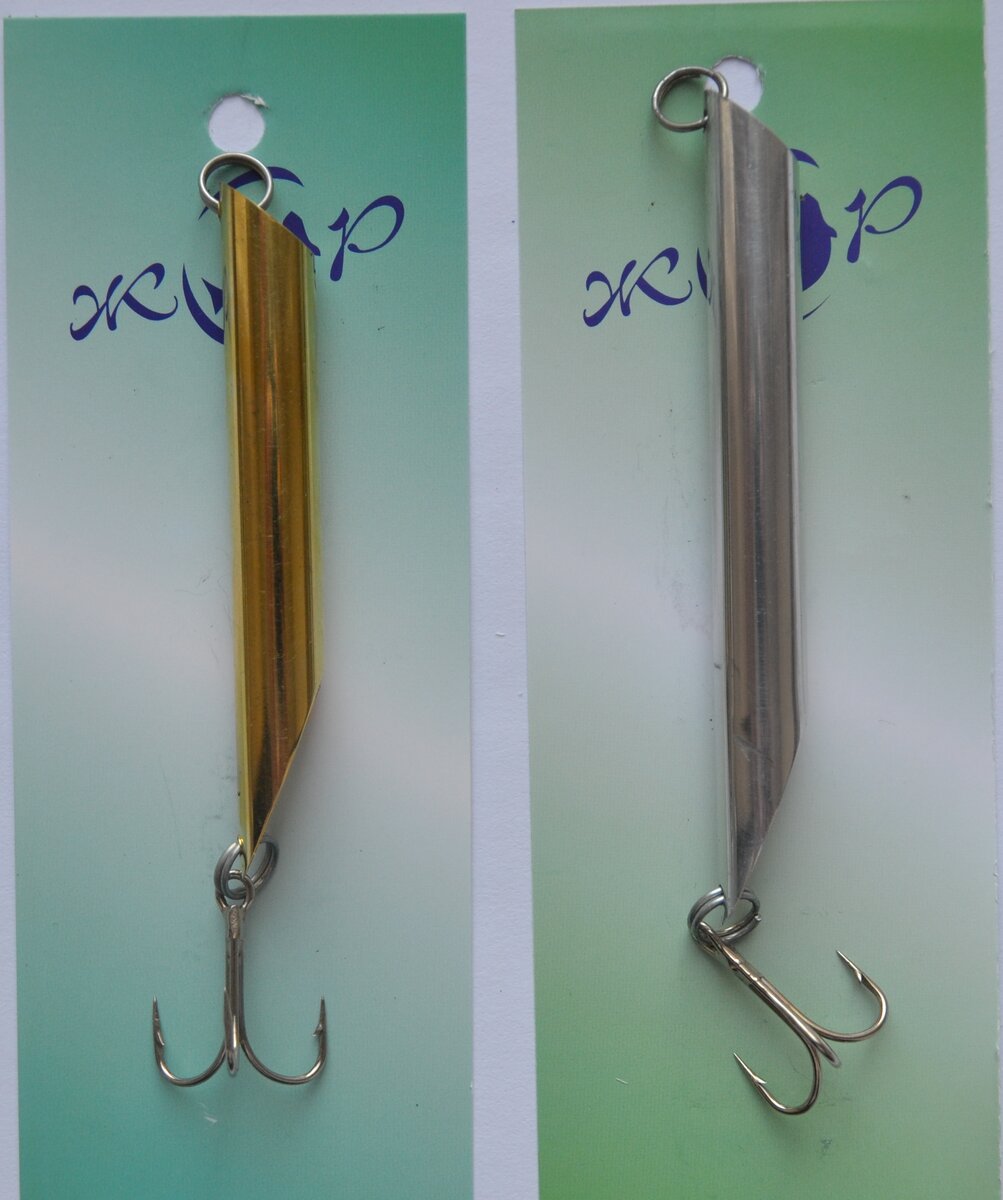 Колеблющаяся блесна Жор Пилькер Трубка Шумелка - заполнена стальными шариками. Получилась отличная акустическая приманка ля ловли хищника на малых и средних глубинах (до 6 –7 метров). При подъеме и падении за счет косых срезов и подвижной внутренней огрузки уходит далеко в стороны, постоянно «подшумливая» внутренней начинкой. Неплохо работает в сумерках, ночью и на рассвете. Рекомендуется ступенчатая проводка. Для зимней рыбалки оформляется светящимся оракулом-лепестком, что делает колебалку не только акустической, но и визуальной. Третье отверстие на тупом конце спила для соединения блесны с леской обеспечивает ее более агрессивную игру