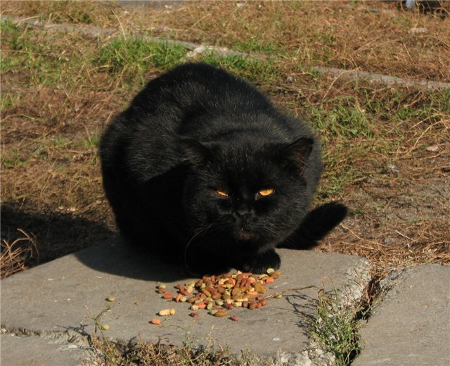 Есть в нашем дворе кот, точнее животина, чьи мама и папа были кот и кошка. Так вот этого их отпрыска сложно назвать котейкой или котиком, ибо складывается впечатление, что жрет он только куриную грудку, а пьет исключительно сливки и замечу, он не ждет пока ему принесут поесть, а отнимает корм сам у местных лавочников. Да, еще у него 100% есть безлимитный абонемент в местную качалку и жмет этот Вася - терминатор сотку (как зовут этого кошака, не знаю). И вот две реальных истории о этом мутанте. На днях, когда было днем тепло и солнечно, на улице банда воробьев облепила маленького глупенького человеческого детеныша, клянча у него хлеб. Вася - терминатор решил, что неплохо бы разнообразить свой рацион и с разбегу врезался в попрошаек. Те, увидев несущийся на них танк, успели ретироваться высоко и надолго...все, кроме одного. Этот умственно отсталый из отряда пернатых просто взлетел на соседнее деревце на самый нижний сук. Вася принял это за оскорбление и полез объяснять мелкому нахалу, ч