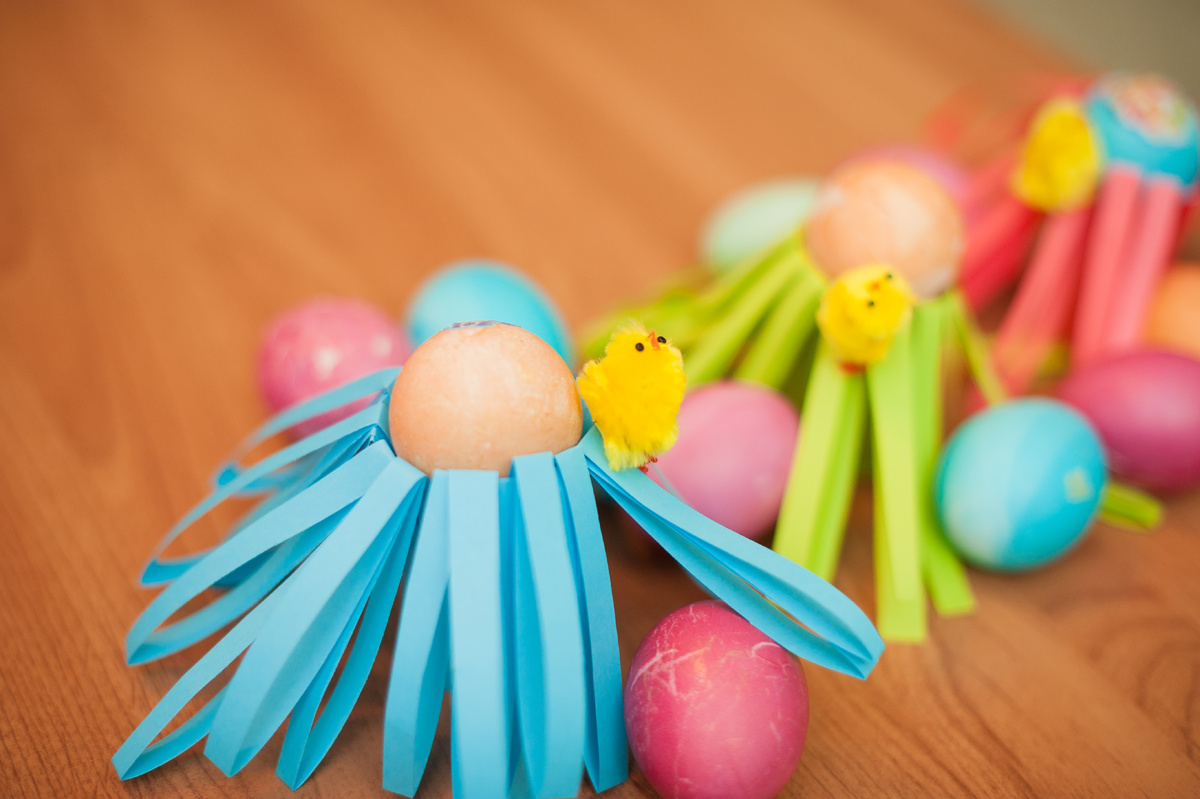 Для такого интересного занятия вам понадобятся: Яйца, предварительно сваренные вкрутую и окрашенные пищевыми или натуральными красителями, можно выложить как в упаковку в которой они были приобретены, так и в корзинку или глубокое блюдо. Дальше всё просто! Даём ребёнку самостоятельно выбрать понравившееся яйцо и наклейки. Демонстрируем как с помощью не хитрых манипуляций можно сделать просто яичко - волшебно красивым. Не запрещаем играть с яйцами, даже если эти игры могут плачевно закончится для последних. Дети учатся, играют, не стоит отбивать к этому желание с самого раннего возраста). Очень весело заниматься украшением яиц в дружной компании одногодок. С помощью ножниц и клея можно легко соорудить вот такие подставки под яйца по принципу новогодних фонариков. Удачного и полезного вам развлечения! И помните время проведённое с детьми за такими весёлыми и яркими занятиями - бесценно!