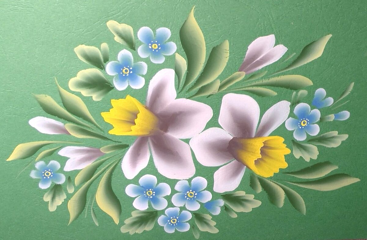 Уже несколько лет я веду свой канал по рисованию. За это время у меня накопилась небольшая коллекция видео с весенними цветами. Я хочу поделиться с вами идеями. 1. Когда говорят про весенние цветы, первое что приходит мне на ум - это тюльпаны с нарциссами. Вот очень простой вариант весеннего букетика. Подробный мастер-класс я выкладывала на своем блоге совсем недавно. Можно изобразить букет из одних тюльпанов. Здесь вам понадобятся круглые кисти и всего 4 цвета. Если вы владеете техникой двойного мазка, то следующее видео с росписью нарциссов вам наверняка подойдет. Во втором ролике вы увидите, как я рисую в технике One Stroke, используя уже темперные краски. 2. Мышиный гиацинт или Мускари имеет приятный голубой цвет, а желтые примулы подчеркивают этот оттенок. Как нарисовать такую композицию на черной бумаге, вы можете узнать из моего урока. 3. Нежные цветы ландыша тоже миниатюрные. Лучше рисовать их в сочетании с другими цветами. 4. Цветущая яблоня не оставит никого равнодушным. Д