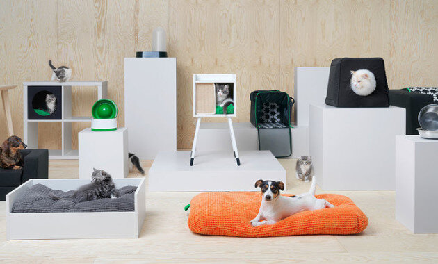 Магазин мебели, в который заходишь за солонокой, а уходишь с тысячью полезных мелочей, устоять перед которым невозможно, решил освоить еще и сегмент товаров для животных. И хотя всевозможные коробочки и модули для хранения уже давно облюбованы домашними питомцами, отдельной серии как таковой у IKEA пока не было. Но гениальные маркетологи бренда решили заполнить пробел в ассортименте, и уже в ближайшее время можно приобрести довольно стильные и качественные вещи для наших четвероногих друзей. Анонсированная еще в октябре прошлого года серия товаров для животных с говорящим названием Lurvig, что в переводе со шведского означает «Пушистый, Мохнатый», рассчитана пока только на кошек и собак. В нее вошли маленький черный диван для четырех чихуахуа, кровать для щенка или котенка, коврик с мягким наполнителем, квадратный домик с плетеной дверцей для кошек и миски разных цветов и размеров. Помимо предметов интерьера будет представлена и линия аксессуаров: ошейники, поводки, миски, игрушки, ког
