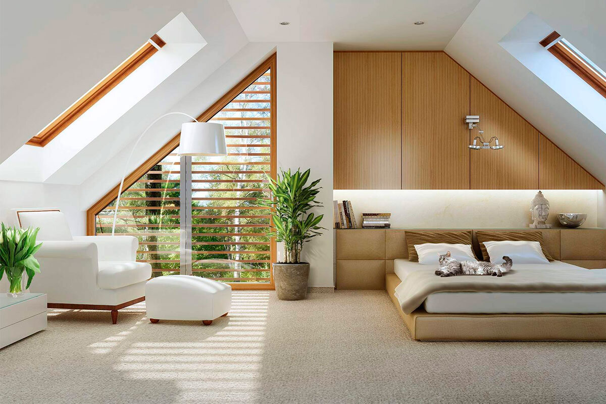 При оборудовании мансарды возникает много проблем адаптации её для жилья, ведь необходимо достичь компромисса между цветами, фактурой и в общем-то небольшим пространством. Интерьерное решение, чтобы приспособить к жизни неиспользуемые помещения, основано в первую очередь на улучшении внешнего вида потолка, а также применении бескаркасных гипсокартонных перегородок в том случае, если площадь необходимо разделить на несколько отсеков. Поскольку дизайн мансарды невозможен без укрепленного потолка определенных форм, то предстоит решить: оставить ли балки на виду, замаскировав проблемные места вагонкой, или же использовать натяжной или подвесной потолок, который «выровняет» верхнее пространство, но и уменьшит высоту помещения. Неплохим вариантом остается и создание крепкого деревянного моста с антресолями из трёх-пяти створок, так как это позволяет рационально использовать пространство под скатом крыши и в то же время не загромождать нижнюю площадь предметами ежедневного поль