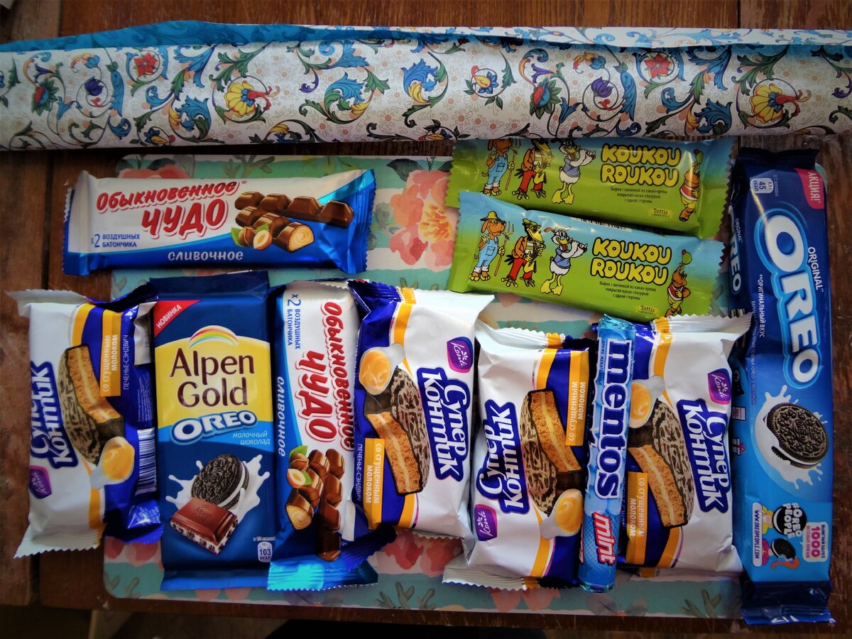 Хочу показать мастер класс по букету из шоколада, батончиков и печенья. Очень быстрый и легкий способ сборки. До этого я показывала красный букет, теперь хочу сделать синий. А так же он получается бюджетным, у меня вышла себестоимость около 300р. Шоколад, батончики и печенья можно брать по акции в магазинах, главное, что бы подходили по цвету. Такой букет можно подарить близким на праздник, да и просто так, что бы порадовать в эти серые будни. Нам понадобиться: 1. Печенье, батончики, шоколад. На Ваше усмотрение, главное что бы они сочетались по цветовой гамме. О сочетании цветов Вы можете прочитать тут. 2. Шпажки. 3. Упаковочная бумага. 4. Скотч. Процесс: 1. Печенье и конфеты с помощью скотча крепим к шпажкам. Тяжелые упаковки с печеньем и шоколадки крепим на две шпажки. 2. Когда все сладости прикреплены к шпажкам, собираем их в букет. 3. Упаковываем букет в упаковочную бумагу и завязываем бант . Букет готов! Ставьте лайки, подписывайтесь на канал, впереди еще много всего интере