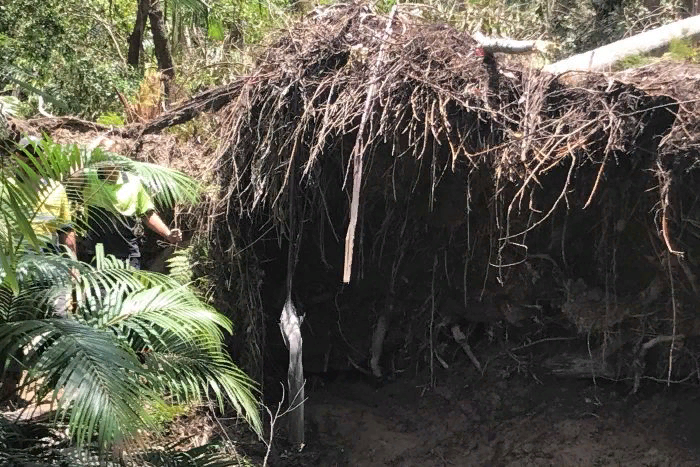 На первый взгляд упавшее дерево может быть чарующим явлением, но с другой стороны, оно опаснее, чем выглядит. 12-летний мальчик из Квинсленда был предоставлен сам себе и получил серьезные поражения после игры вокруг упавшего после шторма дерева. У мальчика было сломано бедро, 8 ребер, сжаты легкие и сдавлено сердце. Что заставляет дерево отскочить вверх после падения? Сильный шторм может стать причиной падения дерева. Плохие погодные условия меняют структуру почвы и если почва вокруг дерева становится слишком слабой, то пластина, держащая корень дерева может подняться и упасть. С одной стороны корень растет в земле, а с другой существует большое давление. Напряжение действует на падающее дерево и заставляет его возвращаться на прежнюю позицию. Как часто это происходит? Более чем за 30 лет не было случаев падения и дальнейшего отскока упавшего дерева. Падающие деревья могут отскочить после шторма при столкновении друг с другом. Очевидно, все зависит от напряжения, которому подвер
