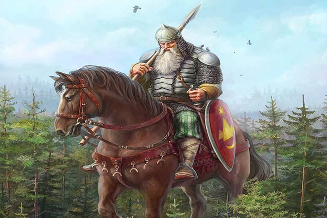 Могучий великан Святогор – самый сильный персонаж древнерусских былин. Однако герой не борется с врагами и не охраняет земли Руси, он появляется в сказаниях для поучительных уроков и как символ бескрайней необоримой силы. Великан замечен всего в пяти преданиях, в двух компанию ему составляет Илья Муромец. Происхождение Святогора заложено в славянской мифологии: великан приходится сыном богу-творцу Роду. Задача героя – охранять мир Яви от вторжения злых чудищ из Нави. Попасть в Явь можно через вход, который расположен возле подножия столпа, держащего небо. Мировое дерево (так назывался столп) находилось в святых горах – отсюда и имя великана. По ту сторону «баррикады», у входа в Навь, дежурили три темных великана – Горынычи, которые старались не выпускать души умерших, жаждущие сбежать. Святогор был в постоянном противостоянии с Горыней, Дубыней и Усыней. Во время правления Царьградом богатырь-великан узнал свою судьбу: по пророчеству, в жены ему предназначено чудовище змеиных кровей,