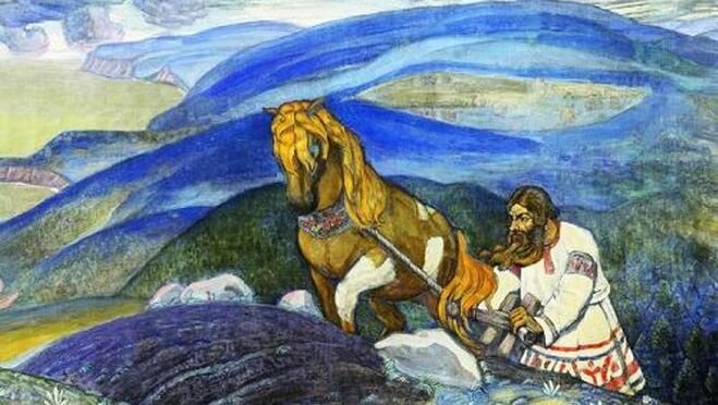 Микула Селянинович – герой, воспетый в былине под названием «Вольга и Микула Селянинович». Былину сочиняли на протяжении нескольких столетий, так как легенда претерпевала изменения и передавалась из уст в уста в различных интерпретациях. Характеристика героев точно передана в версии, сложенной на севере страны после распада Киевской Руси. Неизвестно, каким образом сочинялось описание Микулы, но Вольга (Олег) Святославович – реальное историческое лицо. Князь приходился двоюродным братом царю Владимиру Мономаху и внуком Ярославу Мудрому. В былине отсутствует единство места, времени и действия. Она предполагает описание вымышленных событий с участием сказочных персонажей, но этимология слова указывает на то, что некоторые эпизоды все-таки были на самом деле. Повествование описывает встречу двух богатырей: князя и крестьянина-пахаря. Первый едет на войну, а второй, богатырь-плуг, возделывает землю. Простой крестьянин представлен в благородном облике. Это ухоженный мужчина в чистой одежде