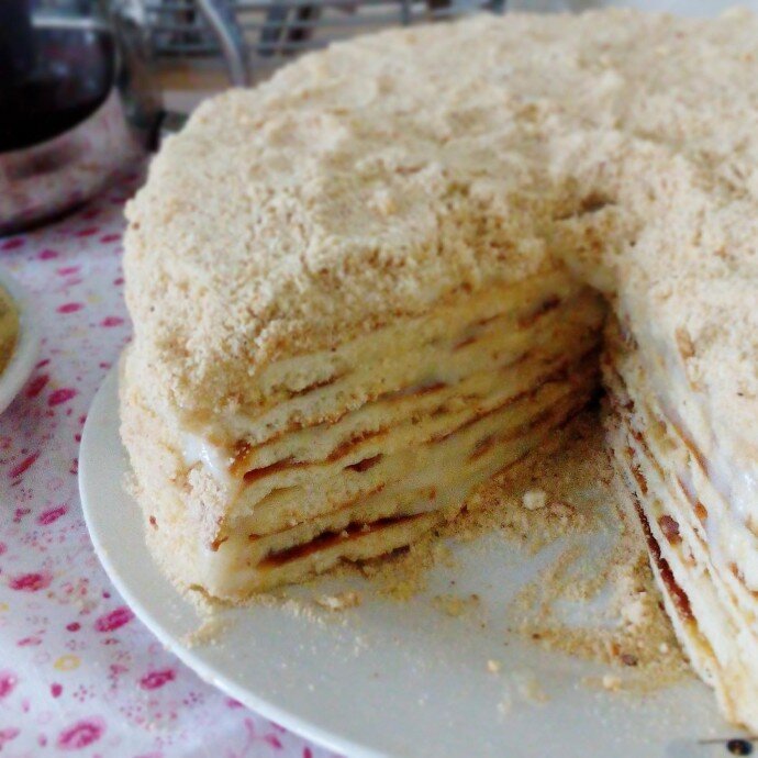 Торт " Минутка" Вам потребуется: для теста: Для крема: Приготовление: В сгущенное молоко добавляем яйцо, разрыхлитель,хорошо перемешиваем. Просеиваем муку, замешиваем тесто ( не должно липнуть к рукам) . Делим тесто на 10 частей, формируем из каждого шар. Раскатываем каждый в тонкую пышку. Вырезаем по диаметру сковороды. Обжариваем на сухой сковороде на среднем огне. Делаем крем. Берем 500 мл молока доводим до кипения. В отдельной миске соединяем яйца и сахар, взбиваем и добавляем муку при этом хорошо перемешиваем. В горячее молоко вводим яичную смесь. Постоянно помешивая. Добавляем оставшееся молоко 500 мл, держим на среднем огне еще минуты 2, пока не начнет густеть. Даем крему остыть. Добавляем в заварной крем сгущенное молоко и сливочное масло комнатной температуры. Взбиваем миксером. Собираем торт слой крема и бананов. Оставляем пропитаться Домашний торт Прага Для коржей: Для крема: Приготовление: Смешать сгущенное молоко и яйца, добавить гашенную уксусом соду и муку с как
