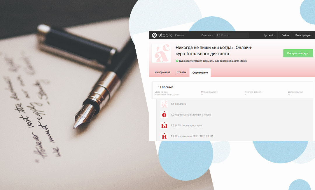 Современная девушка отлично знает причины, по которым ей нужно постоянно развивать свои навыки общения, знания языков и тайм-менеджмента. Но иногда хочется освоить что-то, что, может быть, и не пригодится для карьерного повышения, но определенно расширит кругозор, поможет улучшить качество жизни и позволит блистать в разговоре с людьми разных кругов. Сегодня мы собрали несколько интересных курсов для девушек, которые хотят знать как можно больше обо всем в мире. 1.Онлайн-курс Тотального диктанта Стоимость: бесплатно Этот курс приурочен к ежедневной акции, которая проходит по всей России, — диктанту для тех, кто уже давно окончил школу, но хочет проверить свои навыки русского языка. Курс разделен на несколько моделей: правописание гласных и согласных, слитное/раздельное/дефисное написание слов разных частей речи и пунктуацию. В каждом уроке объясняется по несколько правил и даются небольшие примеры. В конце курса каждый участник должен будет написать диктант, построенный на разобранных