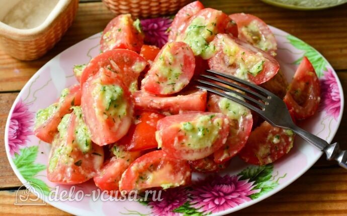 Подавайте помидоры полив их соусом. Вкуснотища!
